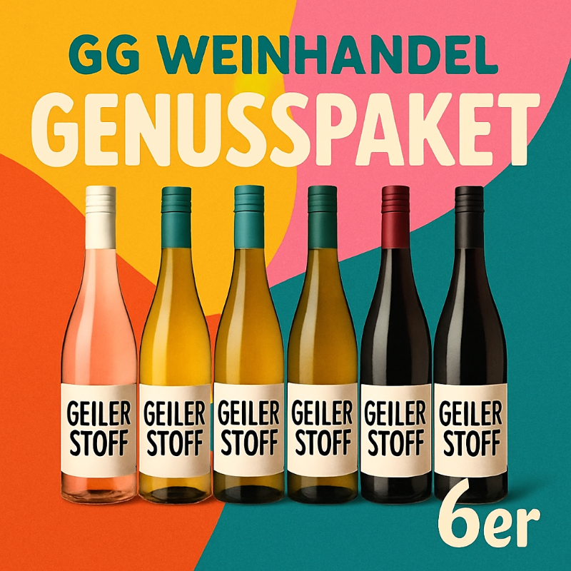 Enthalten sind 6 verschiedene Weine aus unserem Sortiment. Die 6 Flaschen verteilen sich in veränderlichen Anteilen auf Rotweine, Weißweine, Roséweine, Schaumweine und Perlweine. Der Warenwert kann je nach Paket leicht variieren. Der Paketpreis ist dabei immer günstiger, als wenn du die Weine einzeln kaufst.