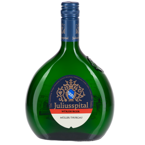 Dieser Wein wächst auf dem klassischen Muschelkalk der Würzburger Weinlagen. Gemeinsam mit dem Einfluss des Mains prägen der Boden und das Kleinklima das Geschmacksprofil dieser Weine: geradlinig, filigran und mit typischen, leicht pfeffrigen Flintnoten. Auch im Keller steht die schonende Weinbereitung im Vordergrund. Die langsame, kühle Gärführung bei 16° - 18° C im Stahltank benötigt bis zu 30 Tage. Im Anschluss reift der Jungwein auf seiner Feinhefe im Edelstahl, bevor er schließlich seinen Weg in den Bocksbeutel findet. Bei diesem Müller-Thurgau treffen feine Noten von Orangenblüten auf gelben Apfel in der Nase. Am Gaumen zeigt sich ein Hauch Muskatblüte mit griffigem Süße-Säure-Spiel. Saftig und mit viel Schmelz verspricht jeder Schluck dieses Weins ein Genuss zu werden. Kombiniere diesen Müller-Thurgau zu knackigen Salaten oder gegrilltem Fisch. Eine Besonderheit und ein „Schmankerl“ fürs Auge gibt es hier noch obendrauf: Der Müller-Thurgau wird gefüllt in einen Motiv-Bocksbeutel mit edler Juliusspital-Gravur.